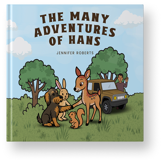 Hi, I’m Jennifer – writer, lifelong book lover, and the person lucky enough to share life (and many walks) with Hans, the real dog who inspired this story. When I’m not writing, I’m usually outside with Hans, revisiting favorite trails, or working on our next story idea.